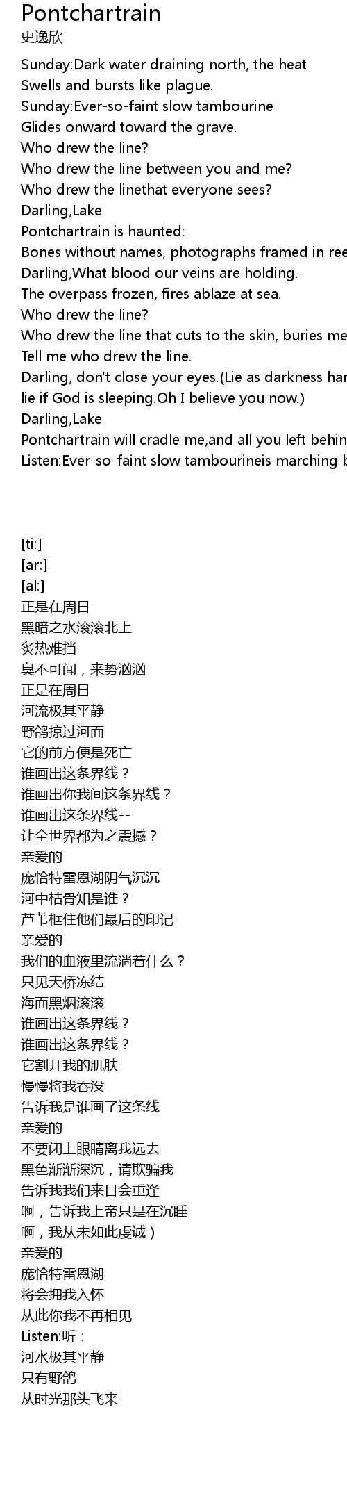 | [01:38.21] | 庞恰特雷恩湖阴气沉沉 |
