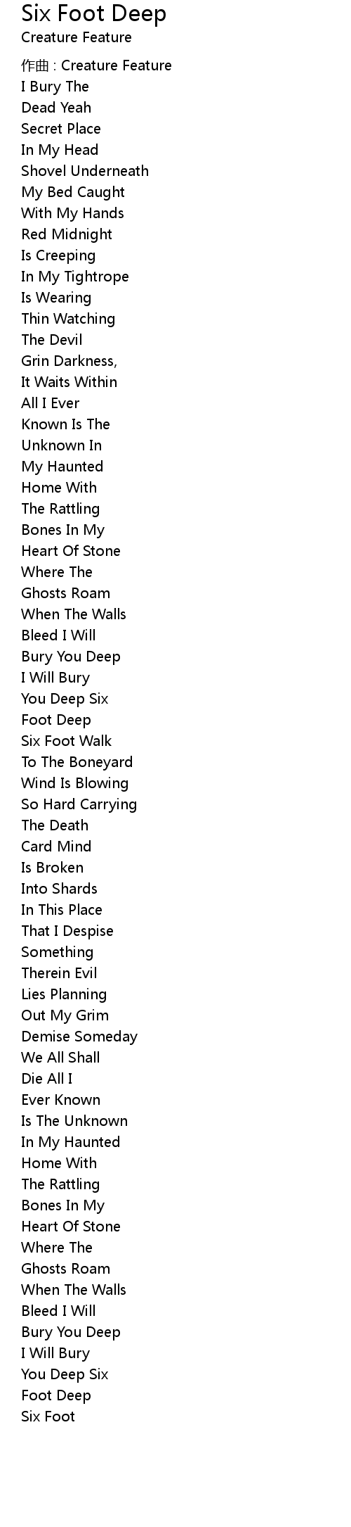 | 歌曲 | Six Foot Deep |
