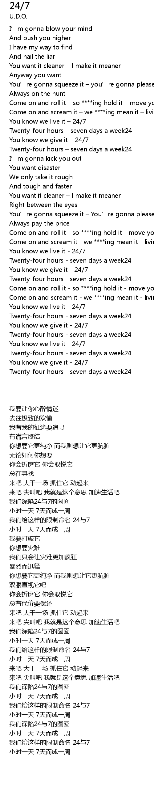 | [03:35.440] | Twentyfour hours seven days a week24 |