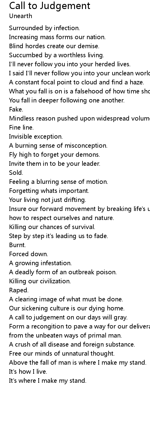 A call to judgement on our days will gray. |
