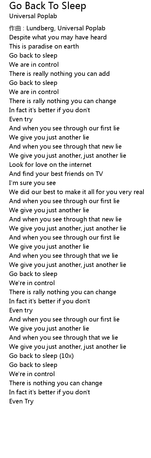 | 歌曲 | Go Back To Sleep |