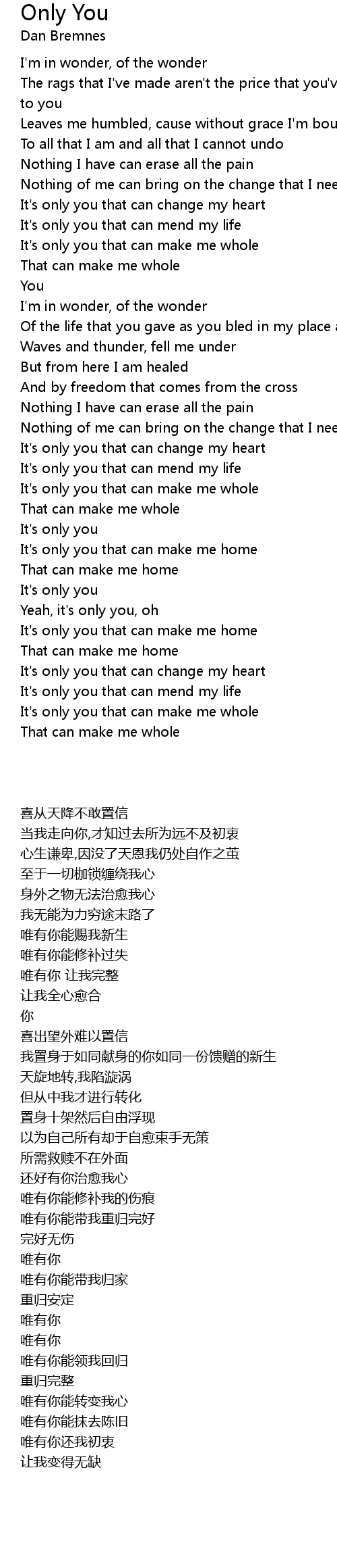 It's only you that can make me whole |