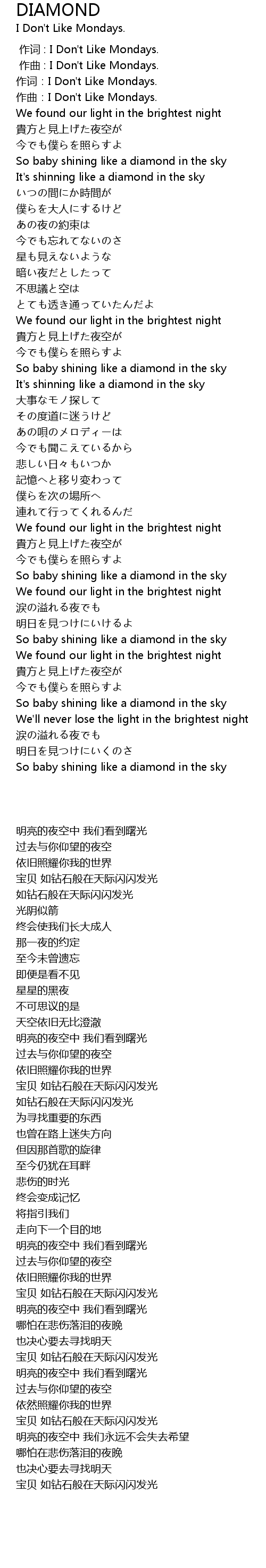 | [00:15.57] | It's shinning like a diamond in the sky |