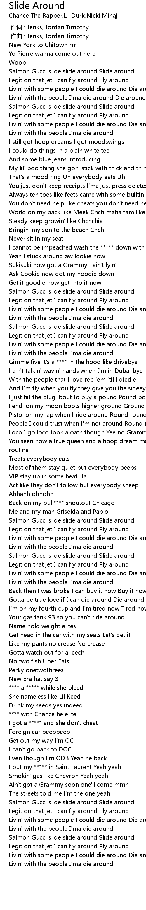 | [02:44.96] | Salmon Gucci slide slide around Slide around |