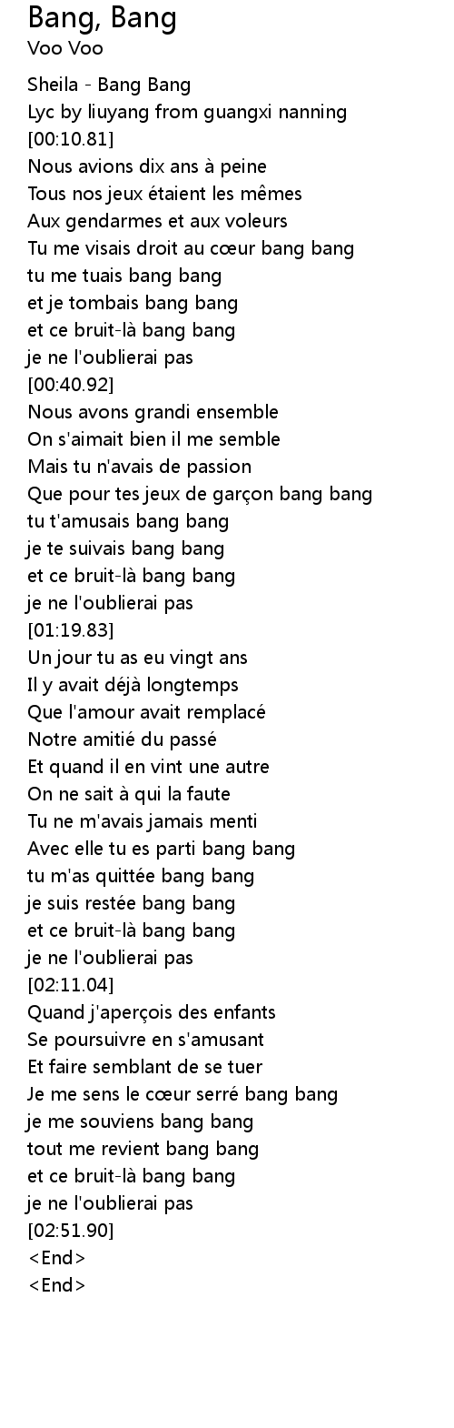 | [02:34.03] | Je me sens le c ur serré bang bang |