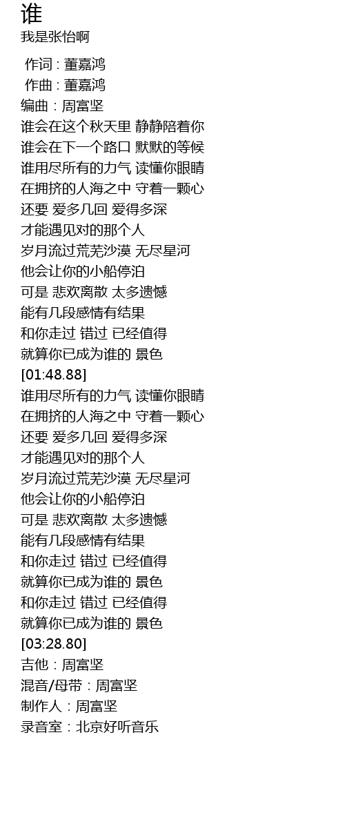 | [03:33.71] | 录音室:北京好听音乐 |