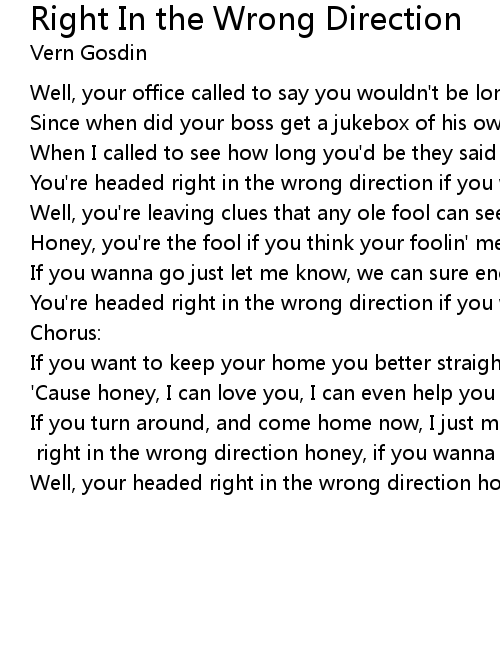 You're headed [D] right in the wrong direction honey, if you wanna come home. |