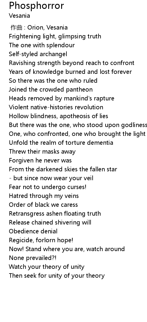 | [00:00.000] | 作曲 : Orion, Vesania |