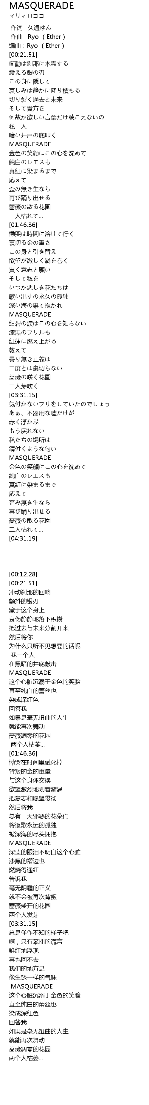 | [04:00.13] | MASQUERADE |