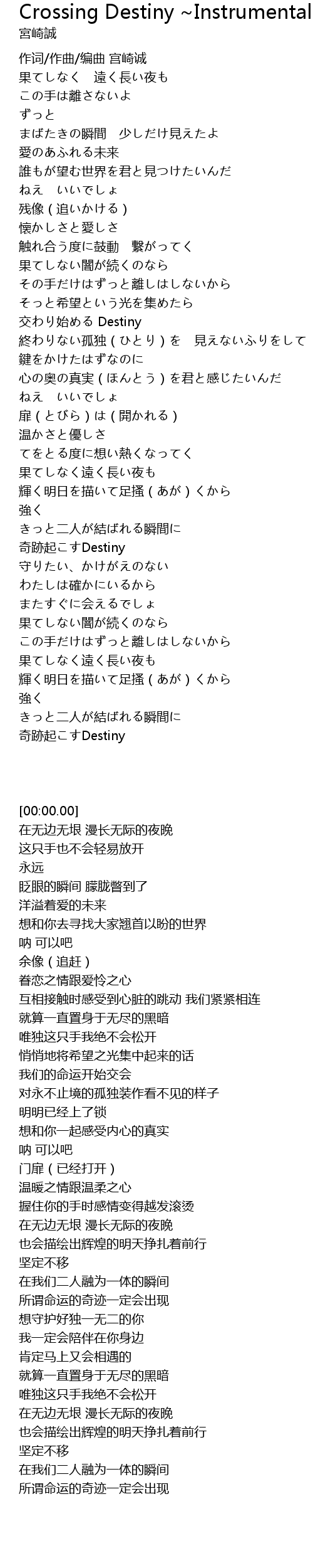 | [00:00.00] | 作词/作曲/编曲 宫崎诚 |
