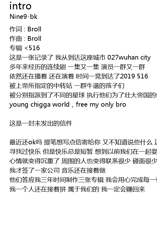 | 这是一张记录了 我从到达这座城市 027wuhan city 多年来经历的连续剧 一集又一集 演员一群又一群 依然还在播着 还在演着 时间一晃到达了2019 516 被上帝所指定的中转站 一群牛逼的孩子们 被分别指派到了不同的星球 执行他们为了壮大帝国的任务 young chigga world,free my only bro | |