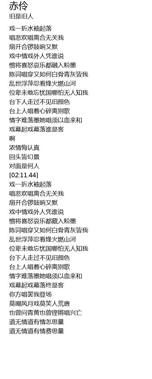 | [01:41.30] | 戏幕起戏幕落谁是客 |