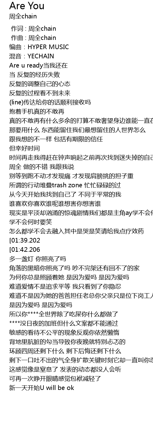 | [00:01.000] | zuò qǔ : zhōu quán chain |