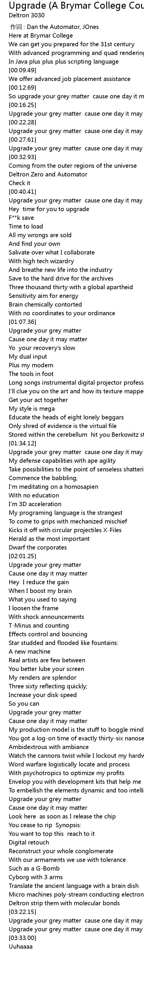 | [03:22.81] | Upgrade your grey matter cause one day it may matter |
