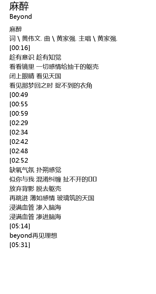 | [00:08] | 词 \ 黄伟文. 曲 \ 黄家强. 主唱 \ 黄家强. |
