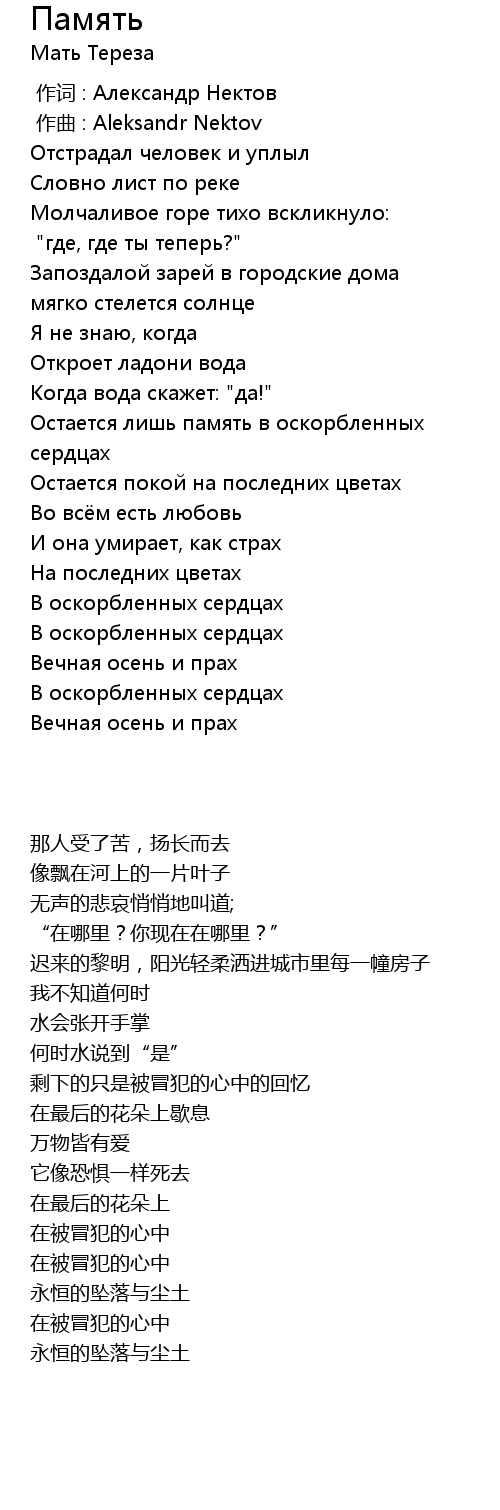 | 歌曲 | Память |