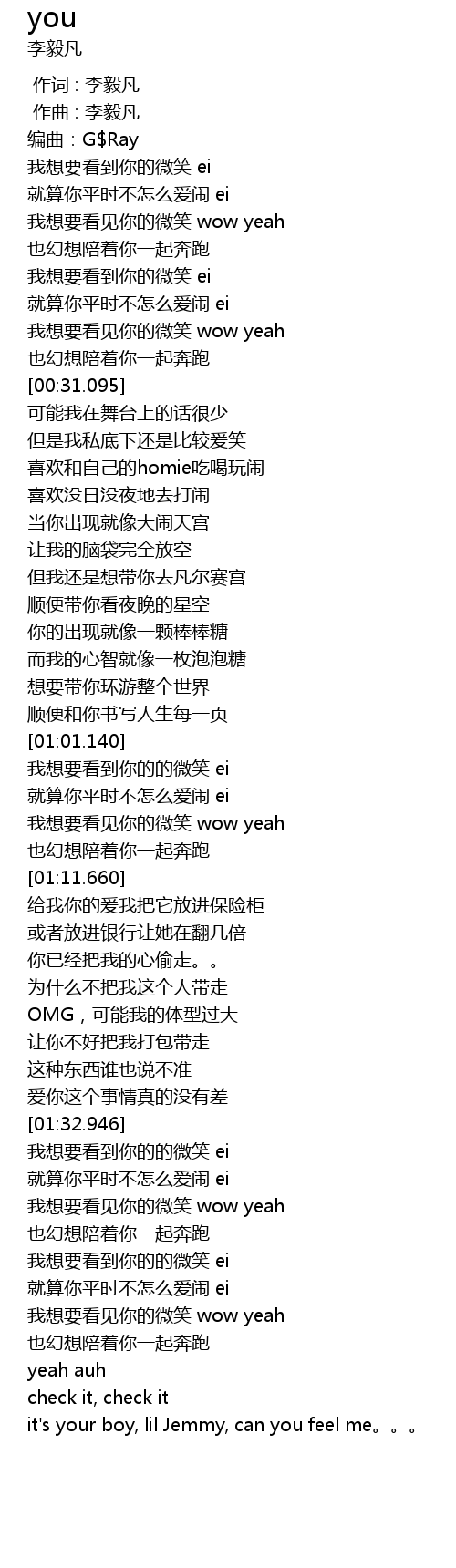 | [02:02.994] | it's your boy, lil Jemmy, can you feel me。。。 |