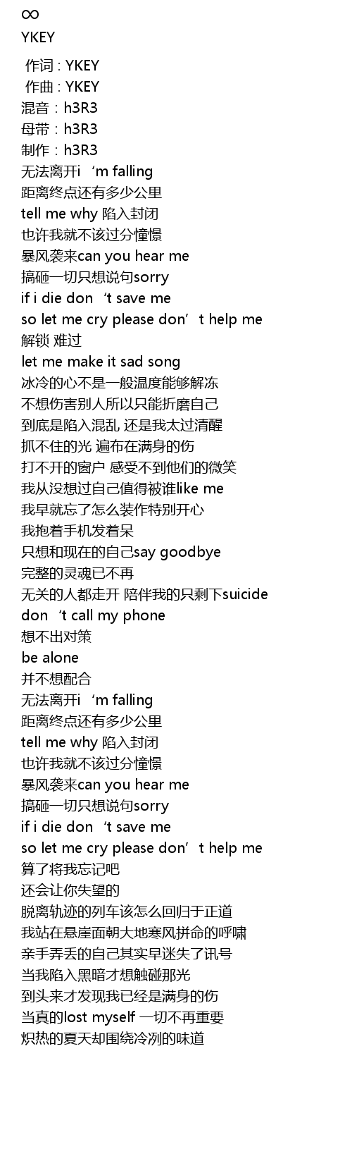 | [01:20.848] | wú guān de rén dōu zǒu kāi péi bàn wǒ de zhǐ shèng xià suicide |