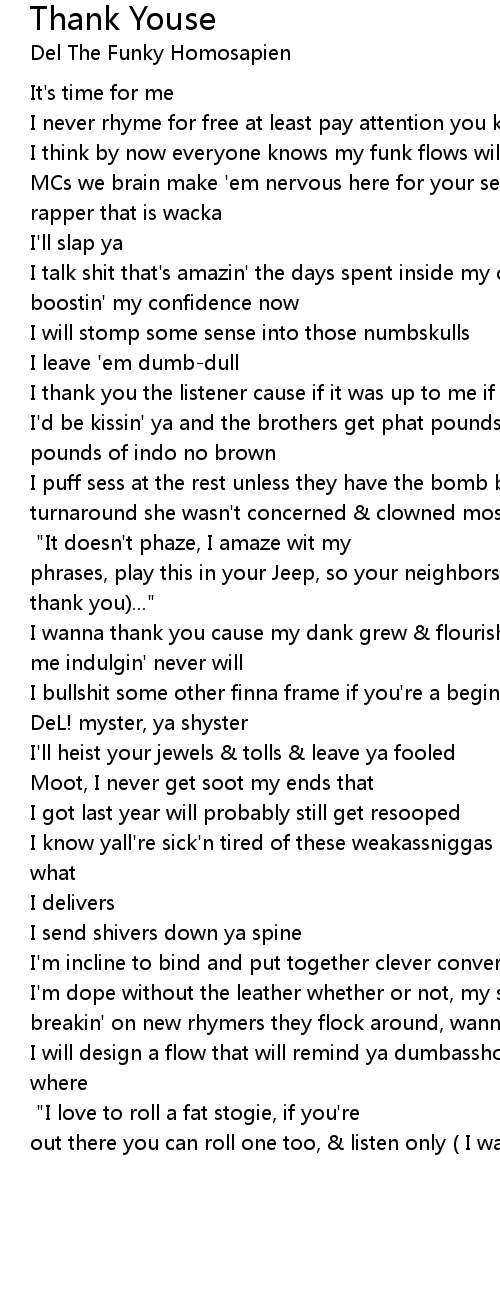 I wanna thank you cause my dank grew & flourished nourished ny hunger sure, it's me indulgin' never will |