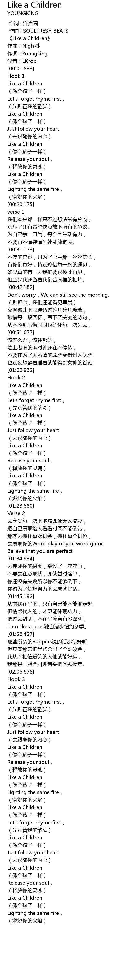 | [00:01.088] | 《Like a Children》 |