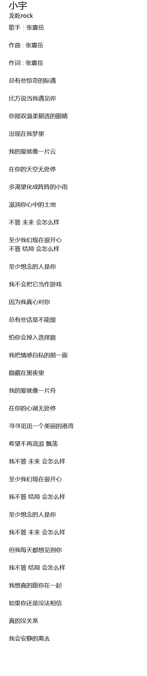 | 作词 : 张震岳 | |