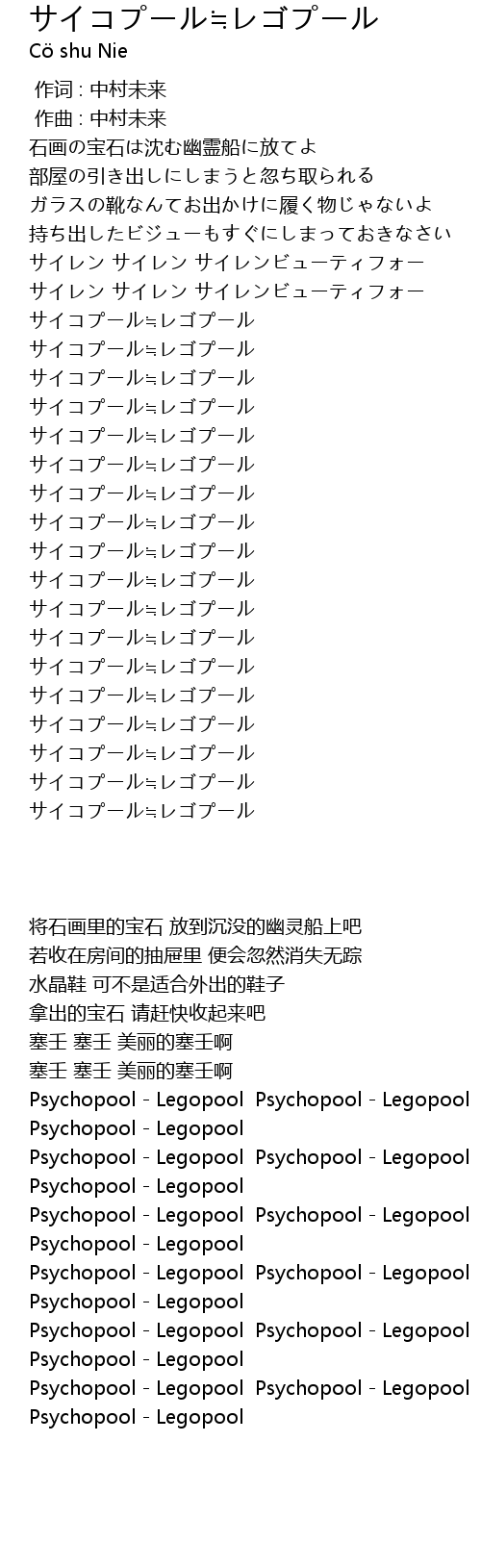 | [03:06.61] | Psychopool - Legopool Psychopool - Legopool |