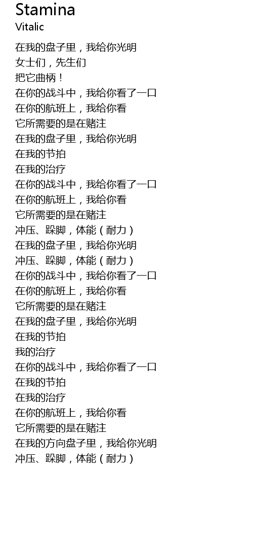 | [2x] | 冲压、跺脚,体能(耐力) |