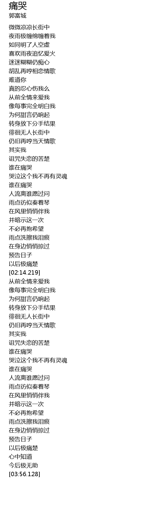 | [03:01.499] | 哭泣这个我不再有灵魂 |