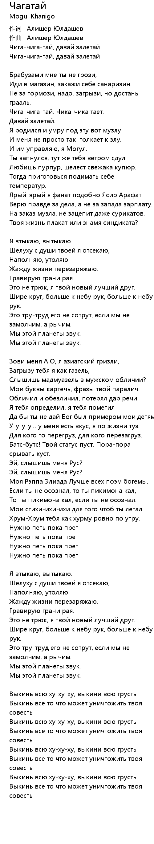 Чига-чига-тай. Чика-чика тает. |