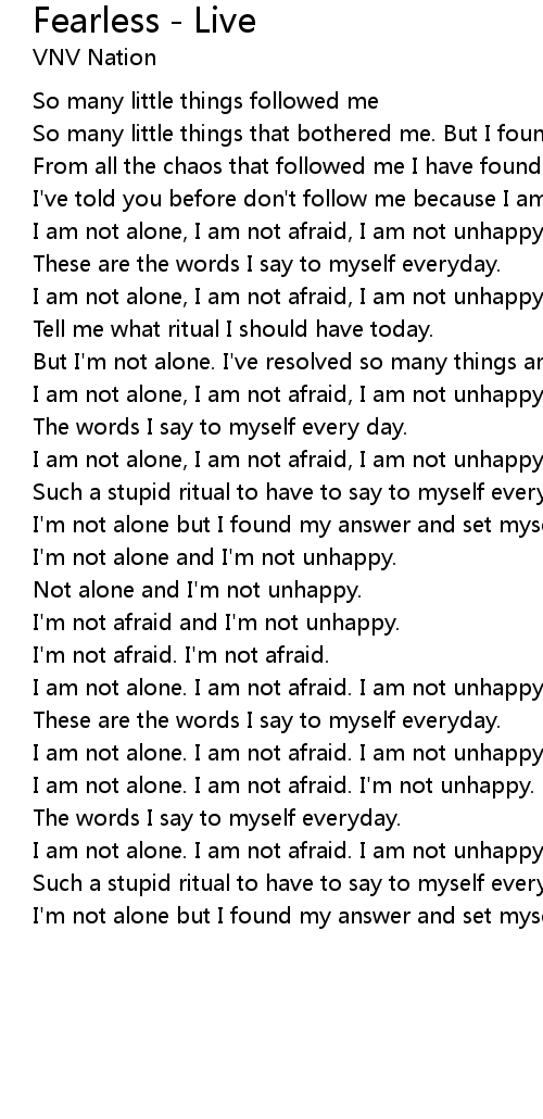 I am not alone. I am not afraid. I am not unhappy. I'm not afraid. |