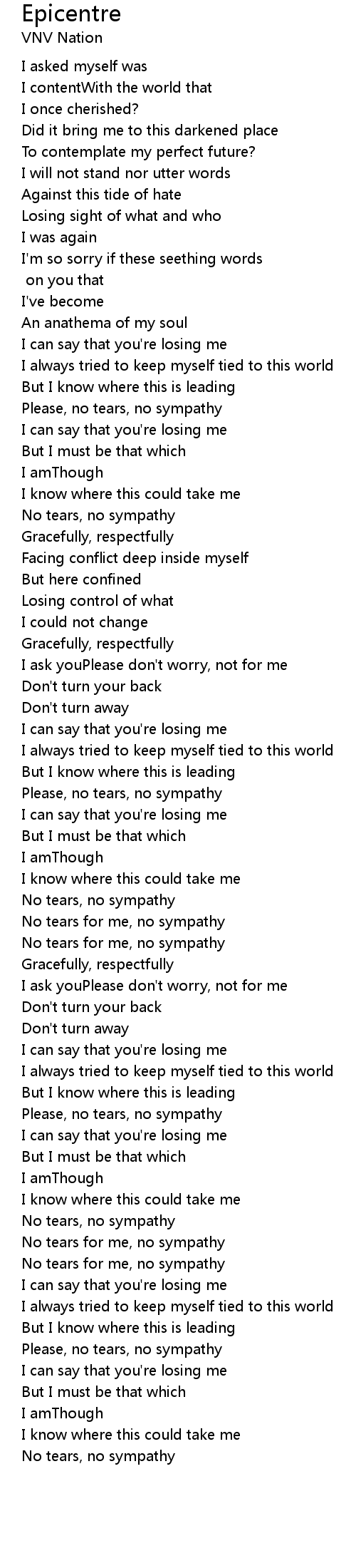 No tears for me, no sympathy |