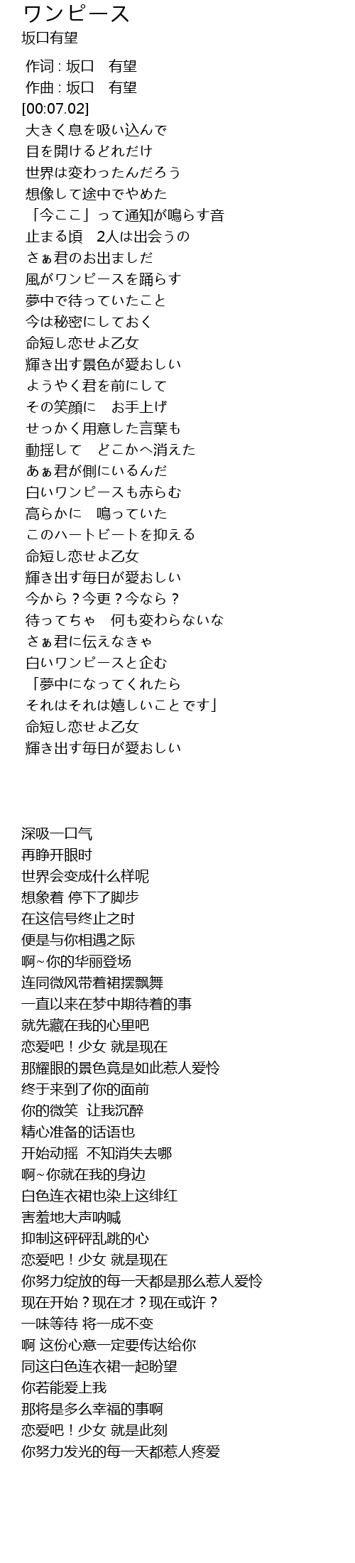 | [00:00.00] | 作词 : 坂口 有望 |