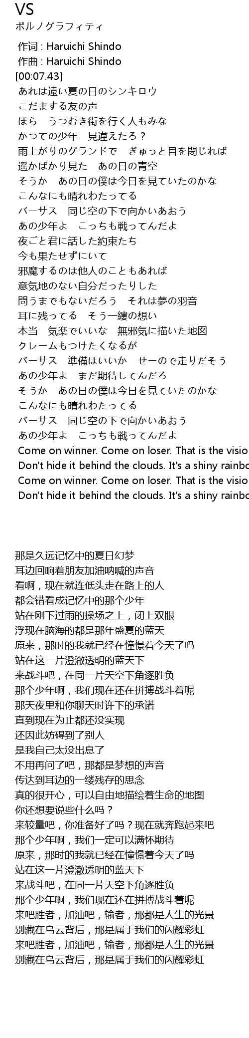 | [03:06.14] | バーサス 同じ空の下で向かいあおう |