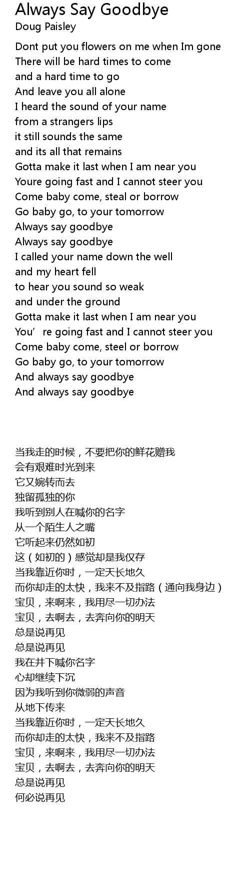 | [00:33.68] | 当我走的时候,不要把你的鲜花赠我 |
