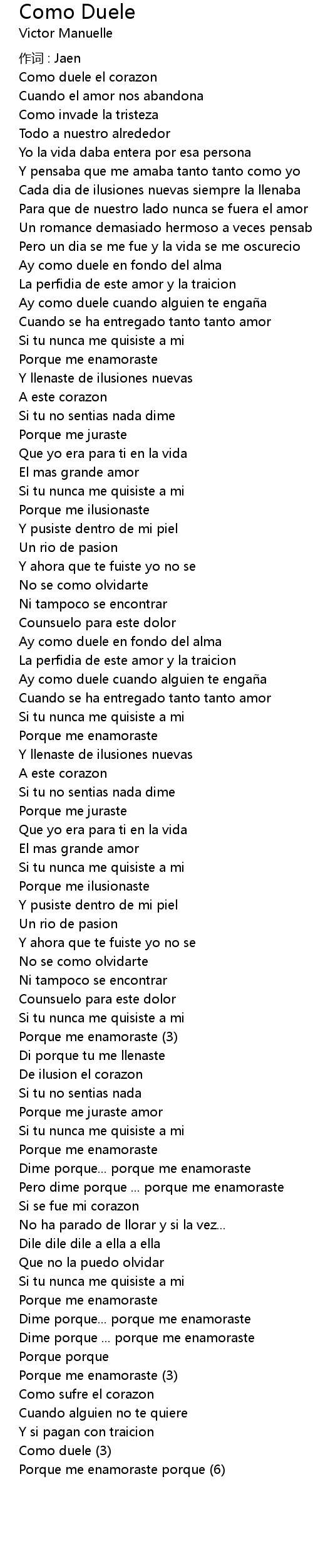 | 歌曲 | Como Duele |