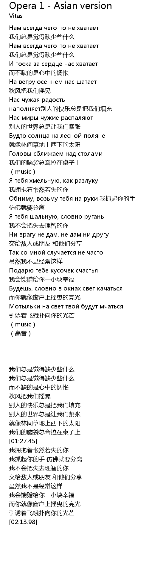 | 歌曲 | Opera 1 - Asian version |