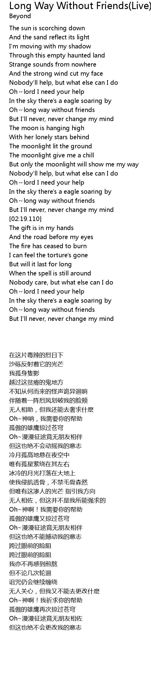 | [01:59.100] | Oh~lord I need your help |