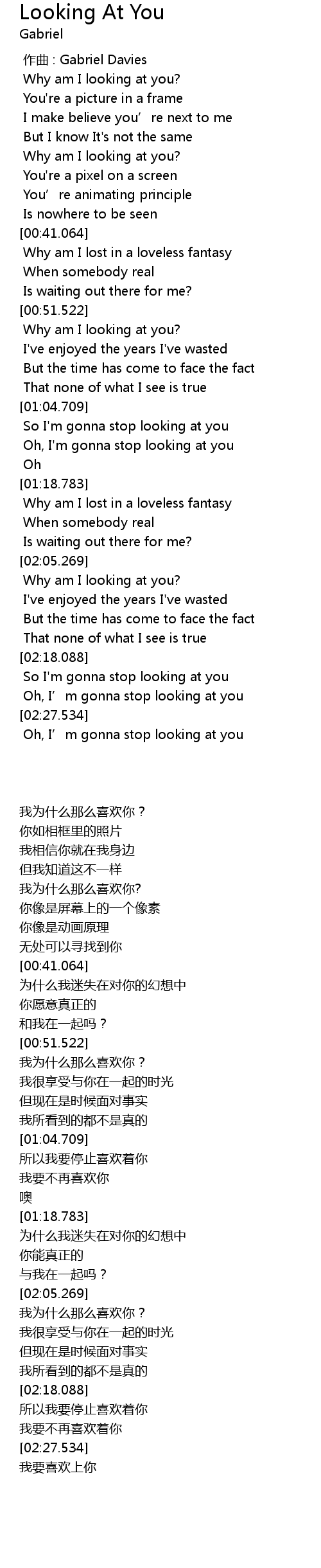 | [00:00.000] | zuò qǔ : Gabriel Davies |