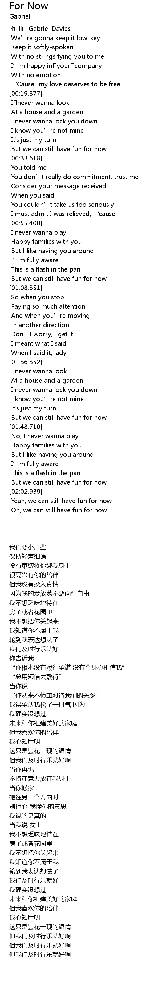 | [00:00.000] | zuo qu : Gabriel Davies |
