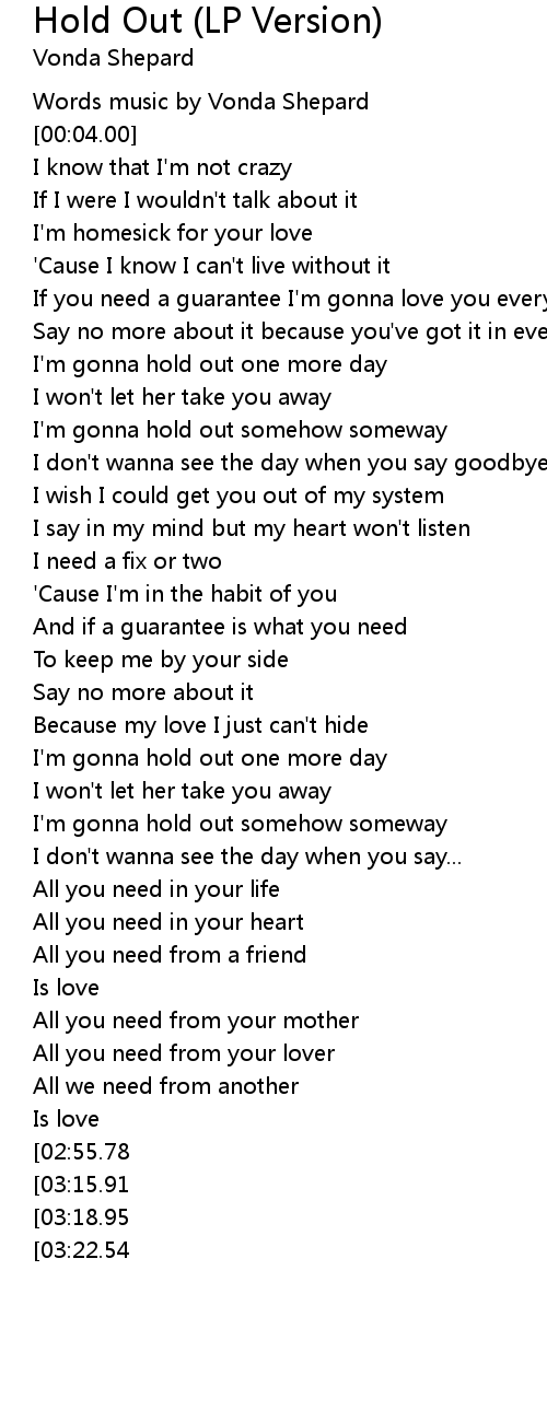 I'm gonna hold out one more day |