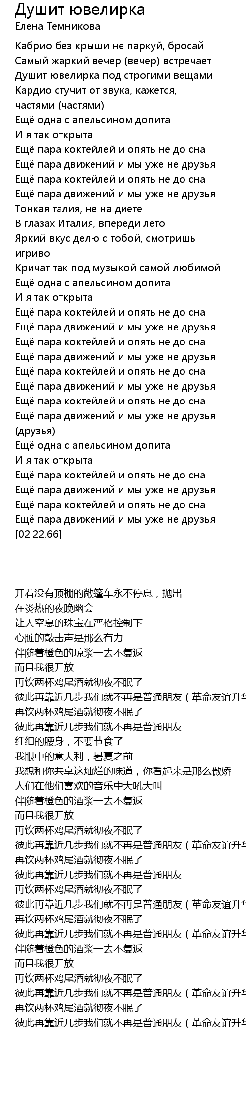 | [02:14.17] | Ещё пара коктейлей и опять не до сна |