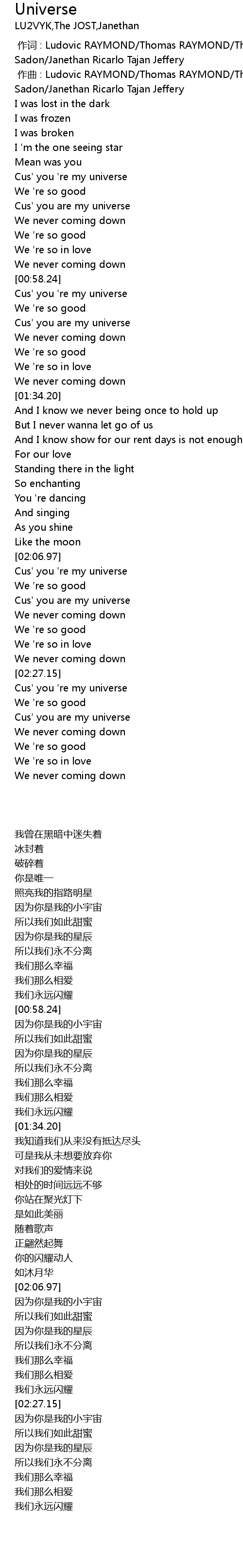 | [02:08.60] | Cus' you 're my universe |