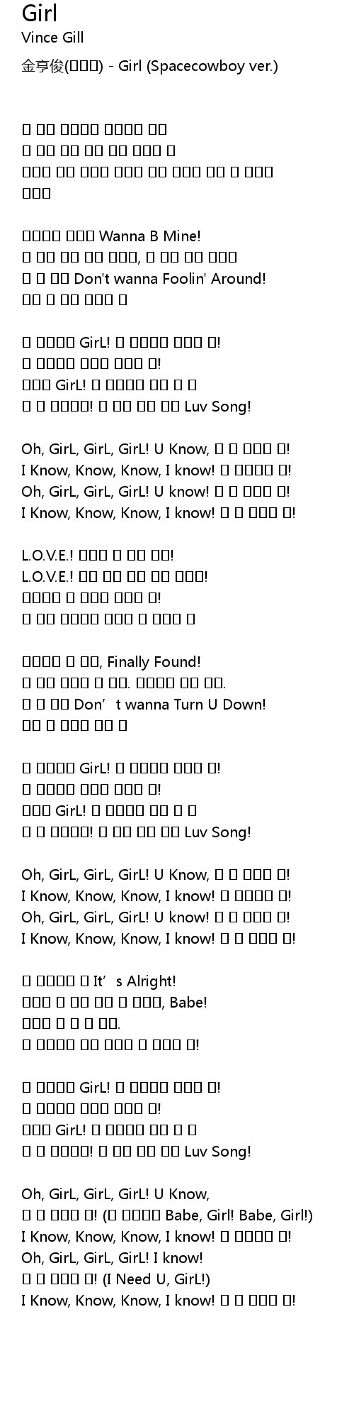 | Oh, GirL, GirL, GirL! U know! 넌 내 사랑인 걸! | |