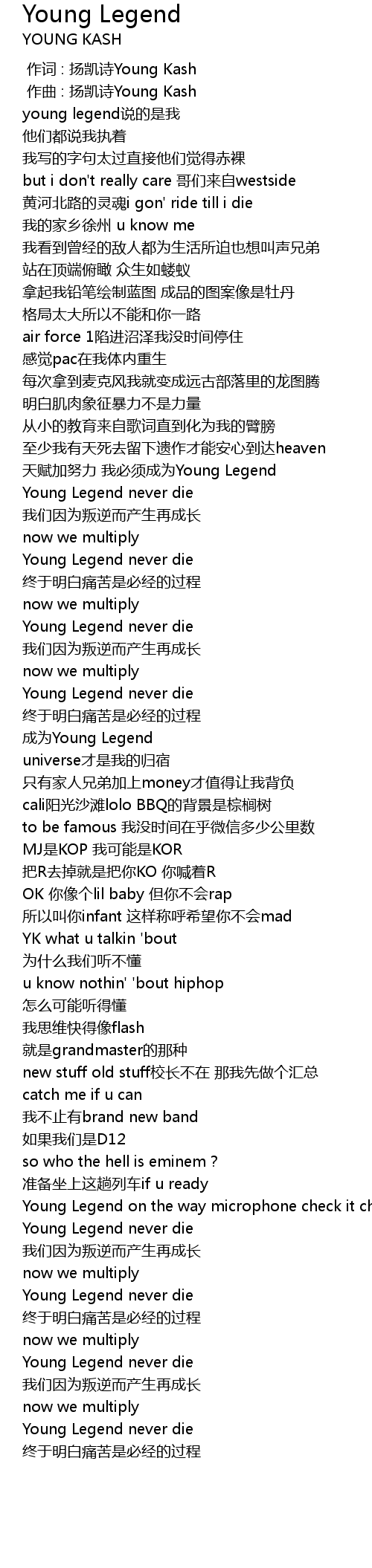 | [00:01.000] | zuò qǔ : yáng kǎi shī Young Kash |