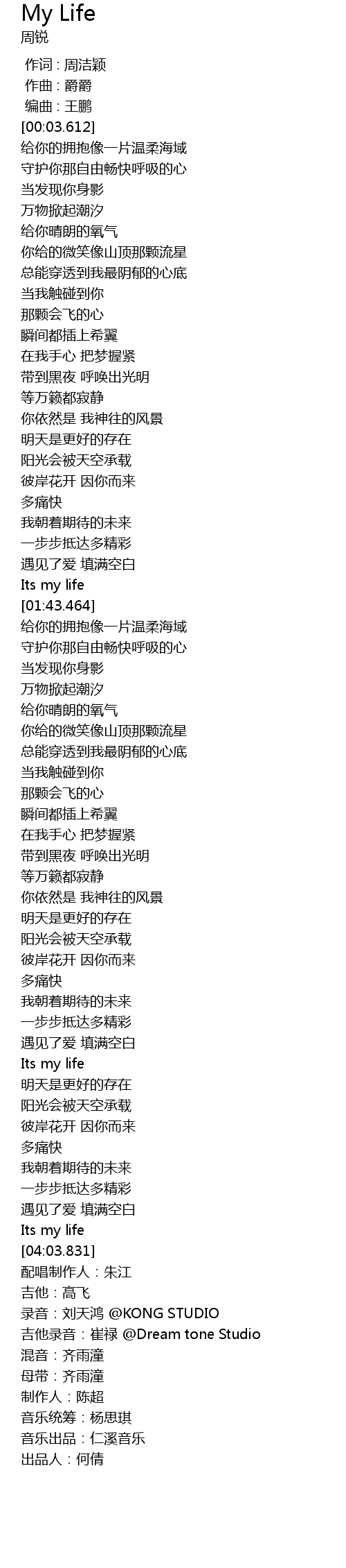 | [01:38.897] | Its my life |