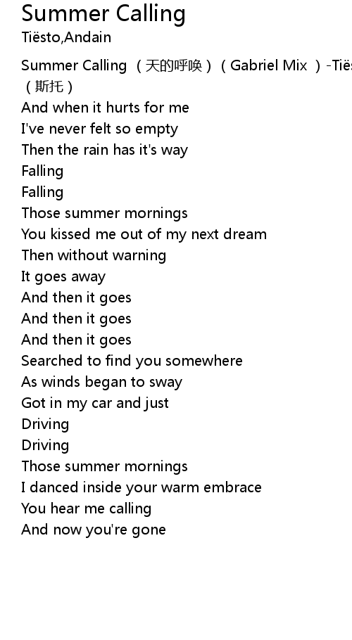 | [00:00.00] | Summer Calling tiān de hū huàn Gabriel Mix Ti sto sī tuō |