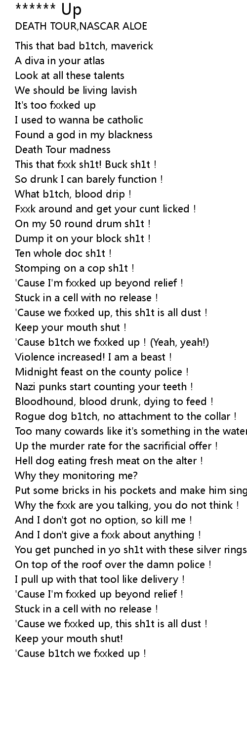 | [01:23.43] | ' Cause b1tch we fxxked up! |