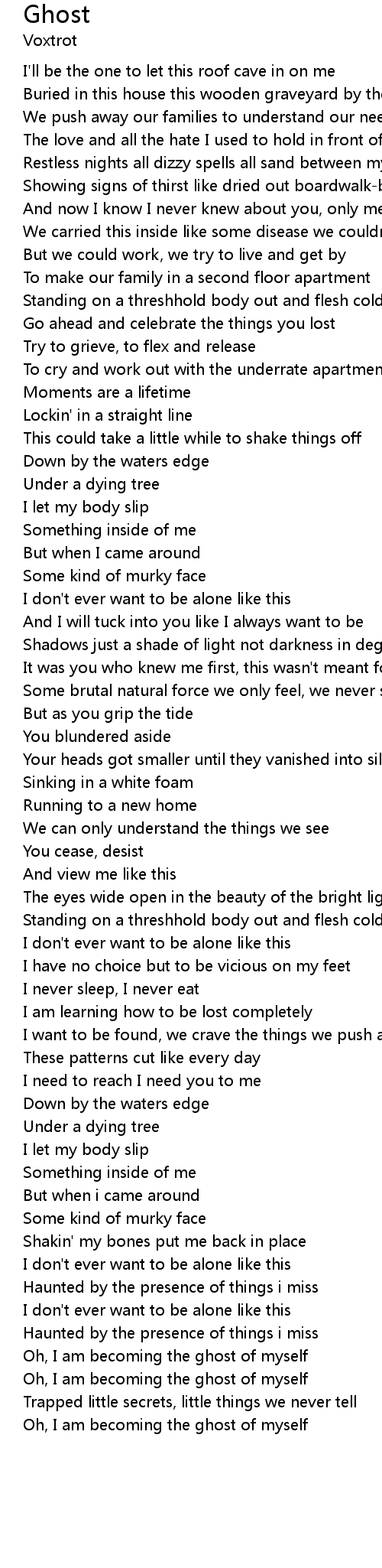 | Oh, I am becoming the ghost of myself | |