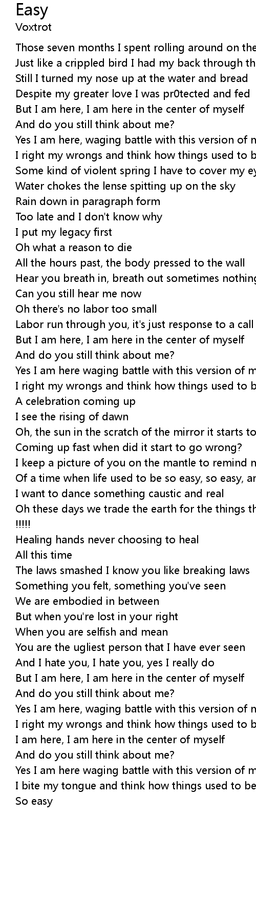 | I right my wrongs and think how things used to be, yes I do | |