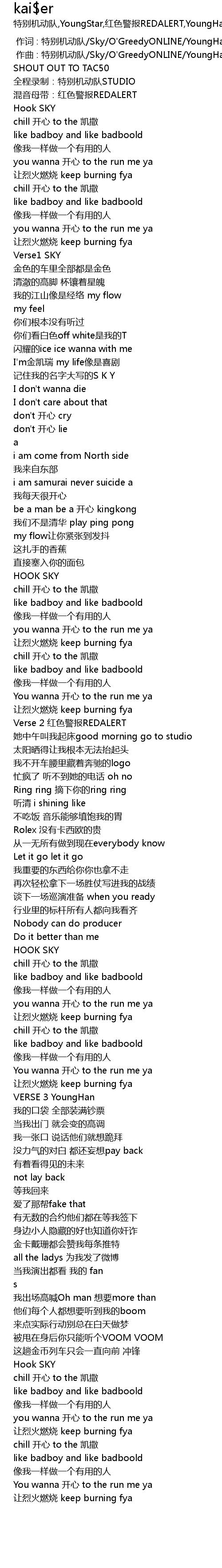 | [02:17.39] | chill kāi xīn to the kǎi sǎ |